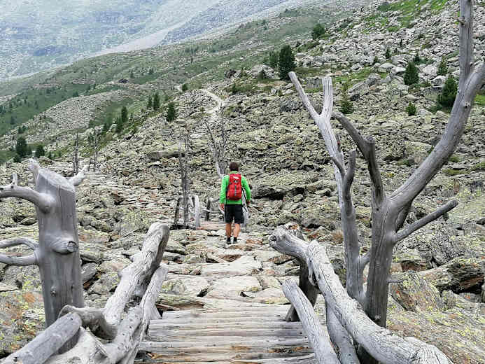Nach einer aussichtsreichen Rast am Madritschjoch erfolgt der Abstieg auf dem gut markierten Steg Nr. 151 in das Madritschtal hinab, bis man die Zufallhütte (2.264 m) erreicht.