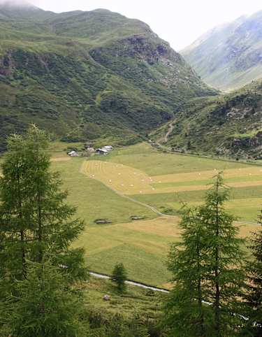 Der weitere Abstieg erfolgt über das Zebrùtal, vorbei an mehreren Hütten und Almen: Pastore, Campo, Pramighen, Pecé und Zebrù, bis hin nach Pradaccio.