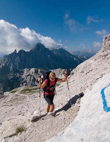 Der Dolomitentrek, besser bekannt als „Dolomiten Höhenweg Nr. 9", durchquert im Gegensatz zu den meisten „Alte Vie" die Dolomiten von Westen nach Osten und nicht von Nord nach Sud.