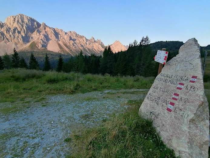 Wir verlassen das Disesistal mit dem Fiume Piave und dem Rifugio Piani del Cristo nach Osten und überqueren die Sella di Keser. Über einen Naturpfad gelangen wir talwärts zu einem Zentrum für Sport und Familie und genießen einen ersten Rundblick zu den Südlichen Karnischen Alpen, besonders zum Monte Cimon. Wir nähern uns dem Deganotal mit dem Hauptort Forni Avoltri und wandern zwischen dem Monte Ombladét und dem Val Fulin durch schöne Bergdörfer. Am Weg zum Naturschutzgebiet Wolayer See und Umgebung kommen wir an einem Campingplatz im Gebiet Runchs, einer kleinen Hochebene, vorbei. Über den Sent. dei Cramars tauchen wir nach längerem Anstieg in die bizarre Bergwelt des Karnischen Hauptkammes ein und überschreiten dabei die Staatsgrenze – vor uns liegt der bezaubernde Wolayer See.