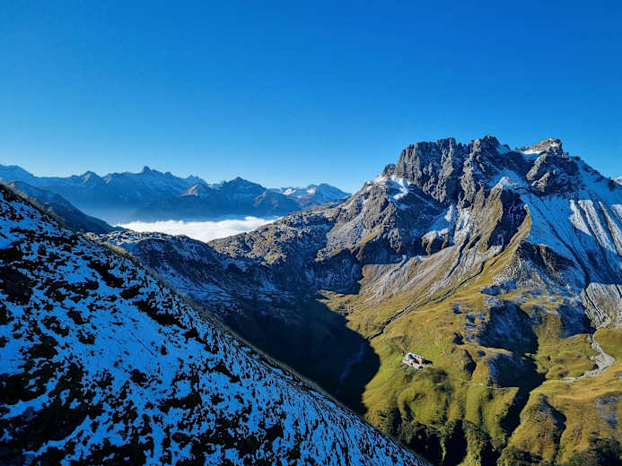 Blick auf die Kemptner Hütte - dem ersten Tagesziel auf der Alpenüberquerung von Oberstdorf nach Meran Foto: Michael Turobin-Ort, DAV-Sektion Allgäu-Kempten Bildergalerie (4)