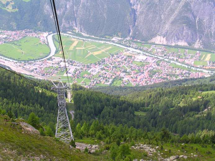 Man quert den Inn und wandert zur Talstation der Venetbahn. Hier nimmt man die Seilbahn und schwebt gemütlich hinauf zum Krahberg auf 2.202 m.