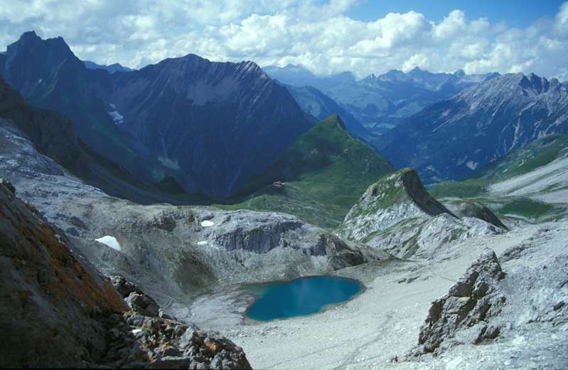 Blick zurück auf die Memminger Hütte und den Mittleren Seewisee Foto: Christina Schwann, ökoalpin