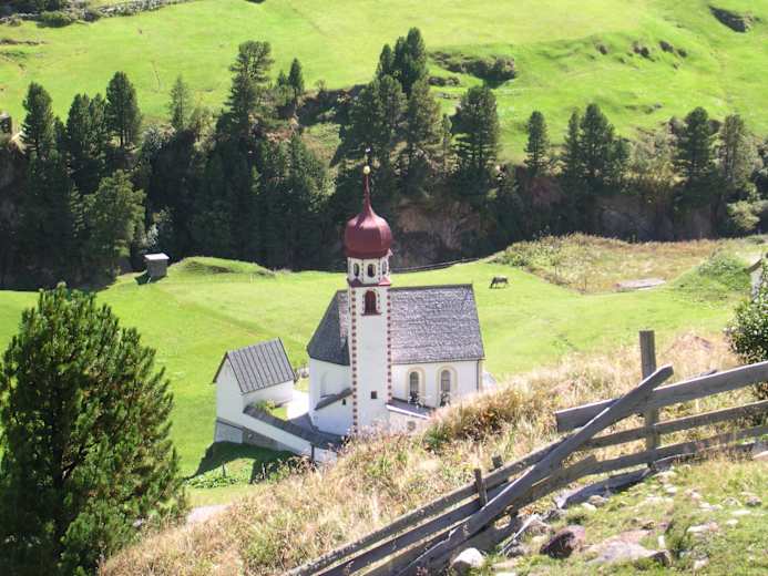 Am Panoramaweg nach Vent Foto: Oase AlpinCenter Am Panoramaweg nach Vent Foto: Christina Schwann, ökoalpin Blick auf das Bergsteigerdorf Vent Foto: Christina Schwann, ökoalpin Die Kirche von Vent Foto: Christina Schwann, ökoalpin Bildergalerie (8)