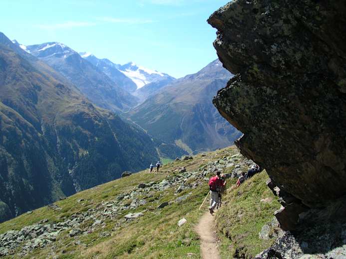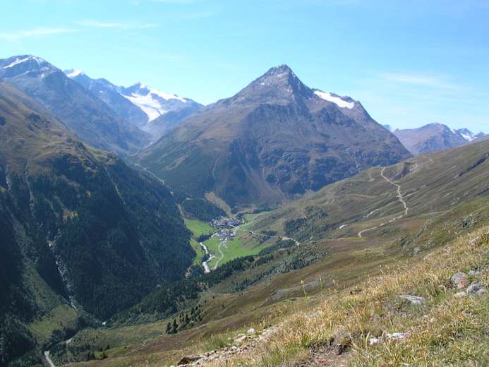 Am Parkplatz des Tiefenbacherferners steigt man aus und folgt der Beschilderung „Ötztaler Höhenweg“ nach Vent. Auf diesem wunderschönen Panoramaweg nähert man sich, so wie es sich für das Bergsteigerdorf gehört, zu Fuß von oben dem hochalpinen Ort auf über 1.900 m.
