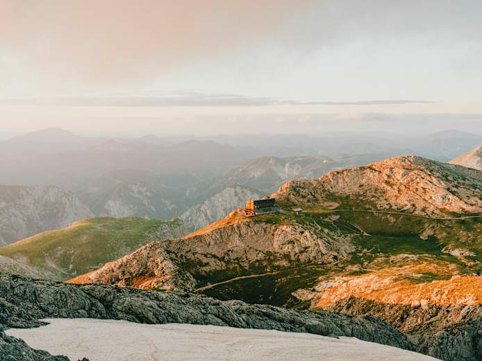 Das moderne Schiestlhaus auf 2.156 m in der Hochschwabgruppe in der Steiermark ist der ideale Ausgangspunkt für die Besteigung des 2.277 m hohen Hochschwabgipfels, von aus man eine prächtige Aussicht genießt. Idealerweise steigt man schon am Vortag von Seewiesen zum Schiestlhaus auf, erklimmt am Morgen den Gipfel und steigt dann gemütlich wieder nach Seewiesen ab.