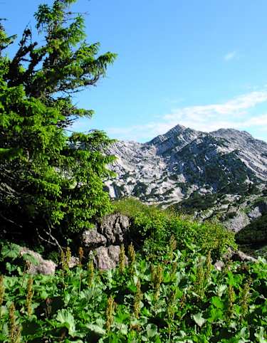 Wieder am Wanderweg Nr. 601 angekommen, führt er rechts in Richtung Wiesberghaus und abzweigend auf den Wanderweg Nr. 613 zum Waldbach-Ursprung. Von hier könnte man in einer mehrstündigen Wanderung den Hinteren Gosausee erreichen. Möchte man sich diesen gut einstündigen Abstecher zum Waldbach-Ursprung sparen, steigt man gleich links zurück ins Tal