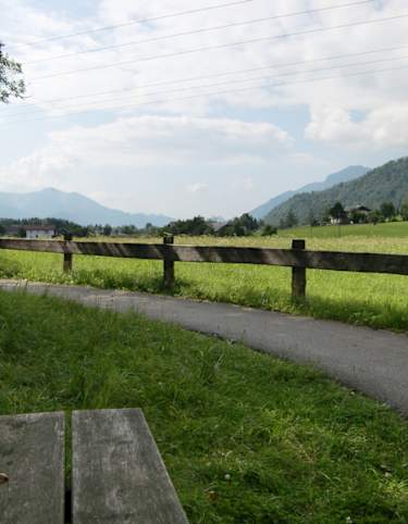 Nach ausgiebiger Ruinen-Erkundung führt der Abstieg über den Römerweg links die Forststraße etwa 30 Minuten hin- unter bis zur Dreifaltigkeitskapelle an der Engleitenstraße. Hier steigt man wieder links in den Soleleitungsweg ein, der beinahe eben und schön schattig unter Bäumen vorbei am Kaiser-Jagd- standbild zurück zum Ausgangspunkt verläuft.
