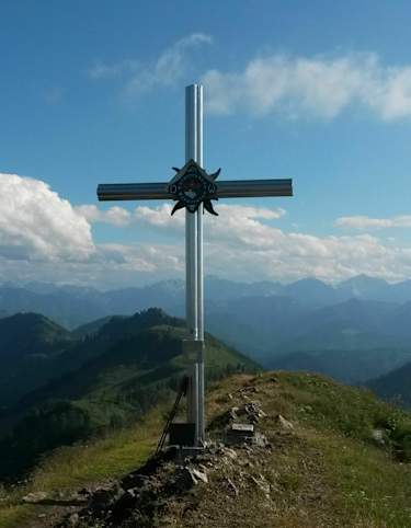 Am Erlakogel angekommen, lässt sich leicht erahnen, wie wehmütig der Riese Erla ins Tal auf sein Schloss geblickt haben mag ... Nicht wehmütig, sondern begeisternd ist für uns der Blick auf den Dachstein, das Tote Gebirge, den Traunsee und bei klarer Sicht weit ins oberösterreichische Flachland hinaus.