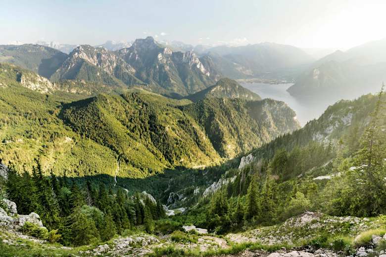 Aussichtsreiche Bergtour auf den Erlakogel von Ebensee im Salzkammergut. Vom Gipfel soll einst der Riese Erla wehmütig ins Tal auf sein Schloss geblickt haben. Heute genieß man nach rund 1.160 Höhenmetern Aufstieg auf den 1.575 m hohen Berg ebenfalls eine wunderbare Aussicht hinunter auf den Traunsee.