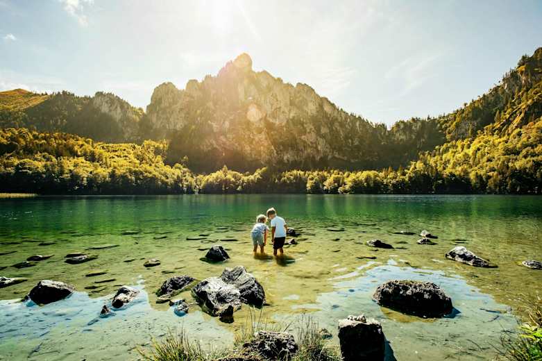 Wunderschöne familientaugliche Wanderung zum Laudachsee am Fusse des mächtigen Traunsteins im Salzkammergut. Hier soll einst das Liebesglück einer Nixe und eines Riesen ihren Ausgangspunkt genommen haben.