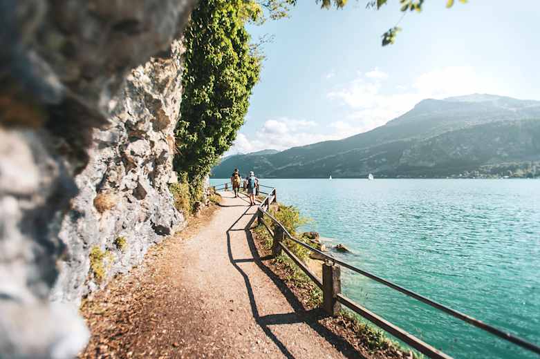 In St. Gilgen führt der gut ausgeschilderte Weg Nr. 28 vorbei am Mozarthaus, zunächst über den Lienbacherweg zum Strandbad. An diesem vorbei spaziert man gemütlich über die wenig befahrene Mondseestraße in den Brunnwinkel mit seinen hübschen Häusern. Ab dort verläuft die nun geschotterte Trasse direkt am Ufer des Wolfgangsees nach Fürberg (Hotel-Restaurant & Schiffsanlegestelle). Vorbei am Waldbad in Fürberg gelangt man in einer Schleife rechts den See entlang zu den beiden wunderbaren Aussichtsplätzen am Ochsen- und Hochzeitskreuz. Entweder den gleichen Weg zurück oder im Wald über einen schmalen Forstweg erreicht man nun wieder den Falkensteinweg, der beim Waldbad in Fürberg rechts in den Wald emporführt. Ein steiler, breiter Weg, den Pilger hier schon seit Jahrhunderten hinaufschnaufen. Etwa die Hälfte der gesamten Strecke liegt hinter einem, sobald man die Kapelle mit den von Pilgern abgelegten Steinen erreicht.