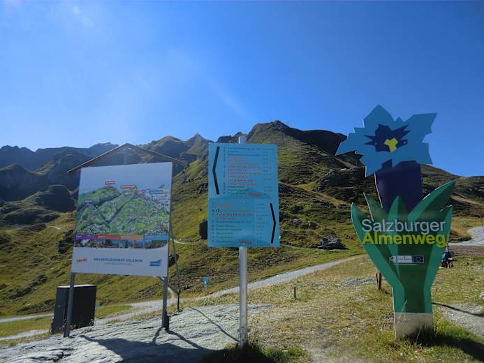Tafeln an der Bergstation der Schlossalm Foto: Anita Bott, Salzburger Almenweg