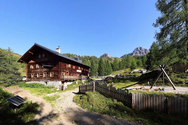 Filzmoosalm (1.710 m), (nach ca. 3 Stunden) Mitte Juni bis Anfang Oktober, T. +43 664 390 66 40 E/Ü/Almsommerhütte