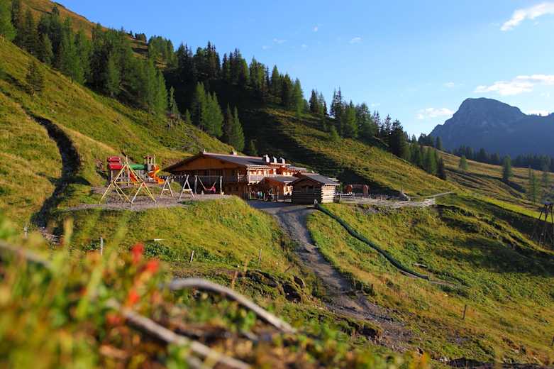 Loosbühelalm (1.769 m), Großarl (nach ca. 4 Stunden) Anfang Mai bis Ende Oktober, T. +43 676 44409518 E/Ü/Almsommerhütte