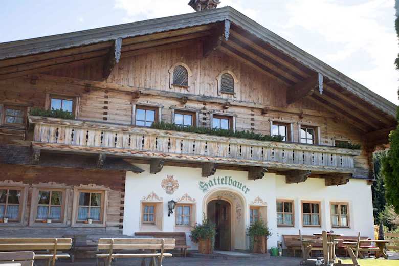 Im Ortszentrum von Flachau können sich Wanderer gut an der Kirche Maria Empfängnis orientieren. Der Salzburger Almenweg führt direkt an ihr vorbei, quert die Tauernautobahn und verläuft danach einem Teilstück des „Weges der guten Wünsche“ folgend bis zum Wechselmaisweg. Diesen querend führt der Weg mäßig steil bergauf durch den Wald und danach entlang der Forststraße bis zum Berggasthof Sattelbauer, der von Flachau in gut einer Gehstunde erreicht ist.