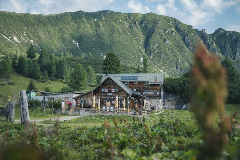 Dikt’n Alm (1.816 m) (nach ca. 2,5 Stunden), Mitte Juni bis Ende September, T. +43 6456 7580 E
