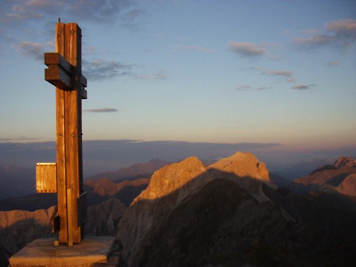 Blick zurück auf die tief unten liegende Obstandsersee-Hütte Foto: Anton Goller, Kartitsch Gipfelkreuz auf der Pfannspitze Foto: Anton Goller, Kartitsch