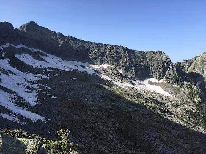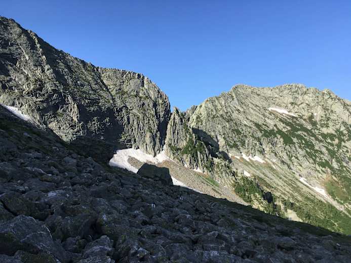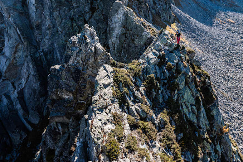 Es folgen ein weites Blockfeld und die Überschreitung des Ausläufers der Cima di Broglio mit leichten Kletterpassagen – luftig, spektakulär und mit Fixseilen entschärft. Nach einer weiteren Blockhalde und einigen Platten, auch sie seilgesichert, quert man, nochmals dank Fixseilen, ins Valle dei Pini. Der Passo di Chènt ist nicht mehr weit, dahinter versteckt sich ein komplizierter Abstieg ins Val Tomé.