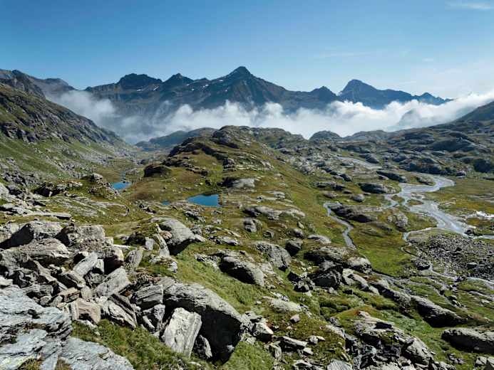 Die Via Alta Vallemaggia ist ein Trekking-Erlebnis der besondern Art: Sie führt in 16 bzw. 17 Etappen (je nach Wahl der beiden Varianten) von den voralpinen Landschaften über dem Lago Maggiore bis ins Herz der Tessiner Alpen zu den hochalpinen Gefilden am Basodino. Die südliche Variante der Etappe 9 ist eine kurze Etappe, die aber über wunderschöne alpine Landschaften mit Seen, Schwemmflächen und Alpenblumen führt. Am Ende trifft sie beim Rifugio Maria Luisa auf die nördliche Variante.