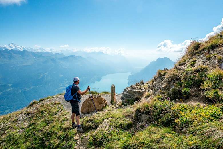 Die Wanderung beginnt aussichtsreich - auf dem höchsten Gipfel des Kantons Luzern, dem Brienzer Rothorn. Oben angekommen lohnt es sich, einen Moment innezuhalten und das Panorama auf sich wirken zu lassen. Der Blick schweift in Richtung Norden über das Waldemmental. Bei klarem Wetter erstreckt sich die Aussicht über den Napf und die dahinterliegende Seenlandschaft bis zum Schwarzwald. Auf der anderen Seite glitzert der Brienzersee in der Tiefe, darüber thronen die schneebedeckten Gipfel von Eiger, Mönch, Jungfrau und bis zu 690 weitere Berggipfel.