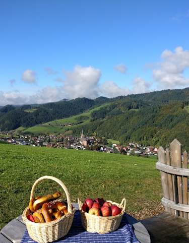 Hier sollte man eine Pause einlegen. Es gibt noch einen letzten Anstieg zum Ende dieser langen Etappe. Von Sasbachwalden geht man hinauf nach „Auf der Eck“. Unterhalb breitet sich das Achertal aus und man geniesst wunderbare Ausblicke. Zum Abschluss der Etappe wandert man durch schöne Weinberge nach Kappelrodeck.
