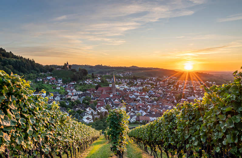 Der Ortenauer Weinpfad verläuft auf 7 Etappen entlang der Badischen Weinstrasse durch die paradiesische Weinlandschaft der Ortenau. Sie genießen kulinarische Leckerein, wunderbare Weine, großartige Aussichtspunkte und besuchen einige Burgen und Schlösser.