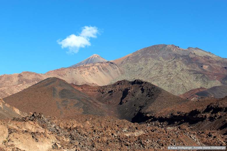 Am Beginn des Wanderweges – Montaña de la Botija mit Pico Viejo und Pico del Teide. Foto: Klaus Wolfsperger, Annette Miehle-Wolfsperger, Rother Bergverag Wir halten uns an der Gabelung halb links mit Weg 13, am linken Rand eines Lavafeldes (halb rechts verabschiedet sich Weg 32 in Richtung Pico Viejo, siehe Variante). Foto: Klaus Wolfsperger, Annette Miehle-Wolfsperger, Rother Bergverlag Wir gelangen auf die Höhe eines Lavasandrückens. Hier knickt unser Wanderweg scharf links in Richtung Montaña de la Botija ab (der gerade Weg zur nahen Montaña Reventada wurde aus Naturschutzgründen gesperrt). Foto: Klaus Wolfsperger, Annette Miehle-Wolfsperger, Rother Bergverlag Blick über die Montaña Reventada zu Pico Viejo (rechts) und Teide. Foto: Klaus Wolfsperger, Annette Miehle-Wolfsperger, Rother Bergverlag Der Gipfelabstecher auf die Montaña de la Botija ist verboten – dafür kann man rechts auf den Nebengipfel aufsteigen und von dort den umfassenden Blick auf den Westen Teneriffas genießen. Foto: Klaus Wolfsperger, Annette Miehle-Wolfsperger, Rother Bergverlag Rückblick zum Botija-Sattel. Foto: Klaus Wolfsperger, Annette Miehle-Wolfsperger, Rother Bergverlag Von der Montaña Samara genießen wir einen prächtigen Rundblick u.a. zu Pico Viejo und Teide. Foto: Klaus Wolfsperger, Annette Miehle-Wolfsperger, Rother Bergverlag Bildergalerie (7)