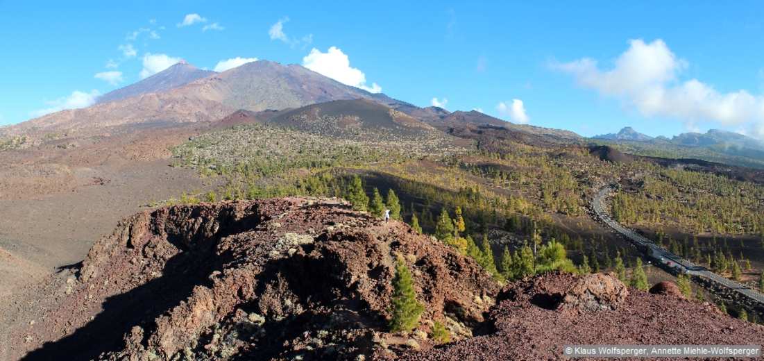 Von der Montaña Samara genießen wir einen prächtigen Rundblick u.a. zu Pico Viejo und Teide. Foto: Klaus Wolfsperger, Annette Miehle-Wolfsperger, Rother Bergverlag Bildergalerie (7)