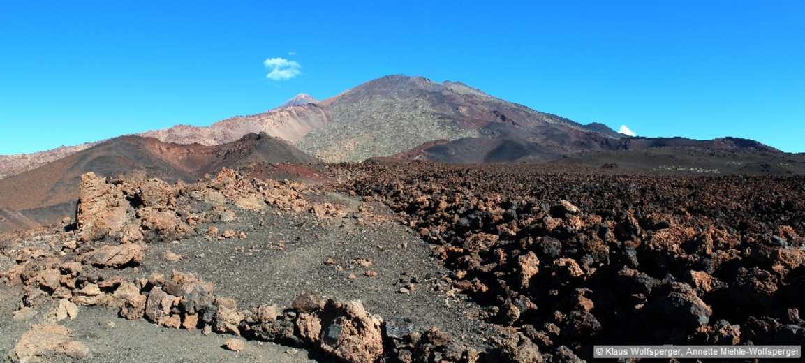 Blick über die Montaña Reventada zu Pico Viejo (rechts) und Teide. Foto: Klaus Wolfsperger, Annette Miehle-Wolfsperger, Rother Bergverlag