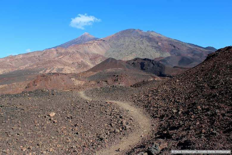 Am Beginn des Wanderweges – Montaña de la Botija mit Pico Viejo und Pico del Teide. Foto: Klaus Wolfsperger, Annette Miehle-Wolfsperger, Rother Bergverag