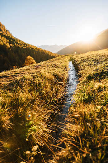 Das Wasser im Waal stammt aus den Gletschern am Hauptkamm, jedoch ist das geringe Gefälle von 2 Prozent kaum wahrnehmbar. Anhand des gleichmäßigen Klangs der Waalschelle lässt sich erkennen, ob alles im Fluss ist und nichts den Waal blockiert.