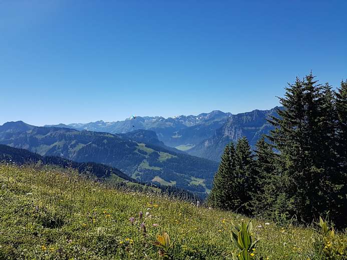 Von der Bergstation der Seilbahn Bezau führt der aussichtsreiche Weg entlang des Bergkammes hinauf zum höchsten Punkt, der "Niedere Höhe". Bald danach wendet sich der Weg und führt entlang des nördlichen Berggrates zur Vorderen Niederealpe. Auf dem Rundweg können prachtvolle Alpenblumen, Karstformen und Feuchtgebiete erlebt werden.