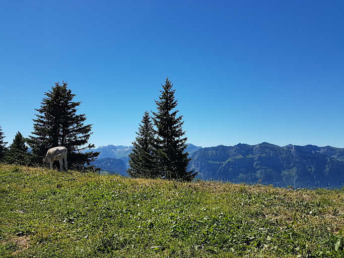 Zur Einkehr laden das Panoramarestaurant Baumgarten und das Gasthaus Niedere ein. Alternativ kann man die Runde auch mit den Bergbahnen ab Andelsbuch starten.