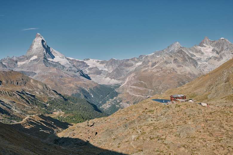 Dank Seilbahnunterstützung schöne und leichte Wanderung zum wunderbar gelegenen Bergrestaurant Fluhalp bei Zermatt. Ausgehend von der Bergstation Blauherd wandert man im Angesicht des Matterhorns bis zur Hütte.