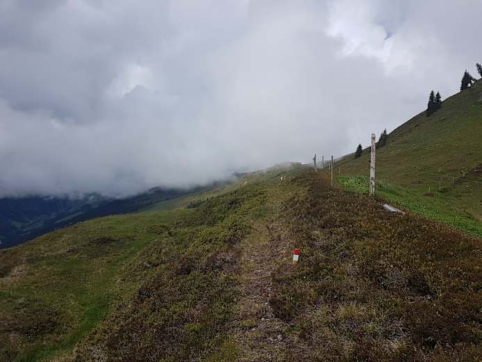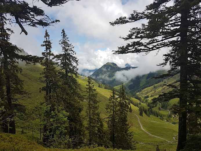 Nun durch den Rosswald und anschließend etwas steiler über Almgelände zum Gipfel.