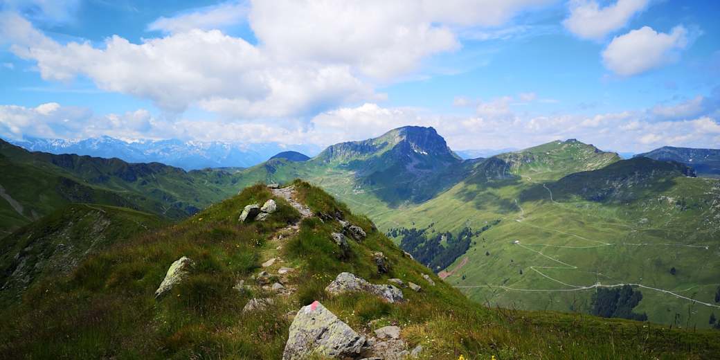 Eine aussichtsreiche Rundtour für die ganze Familie in Saalbach Hinterglemm. Mit der Bergbahn erreicht man mühelos den Ausgangspunkt bei der Bergstation der 12er KOGEL Bahn. Danach wandert man über zwei Gipfel und einen See. Ewas Trittsicherheit und Kondition sind erforderlich.