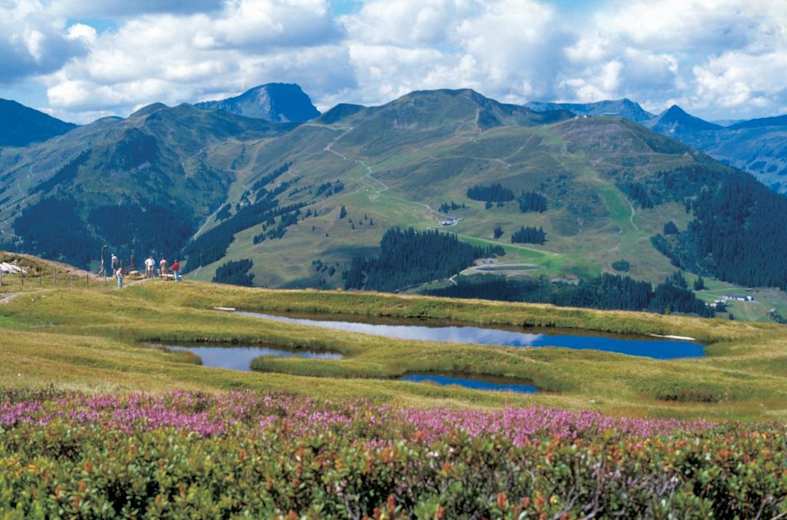 Wunderbarer Höhenweg mit toller Aussicht auf die umliegenden Berge in Saalbach Hinterglemm. Dank Auffahrt mit der Seilbahn sparrt man sich viele Höhenmeter und genießt vom ersten Schritt an die Aussicht.