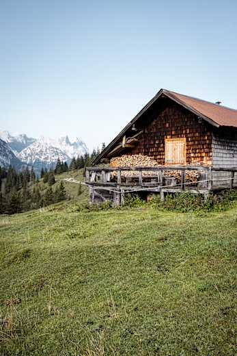 Wunderbar einsame Tour im Naturpark Karwendel in Tirol auf die auf 1.540 m gelegene Grasberalm. Die kleine, unbewirtschaftete Alm bietet einen schönen Blick auf die Falkengruppe. Ausgangspunkt für die Wanderung ist das Rißtal.
