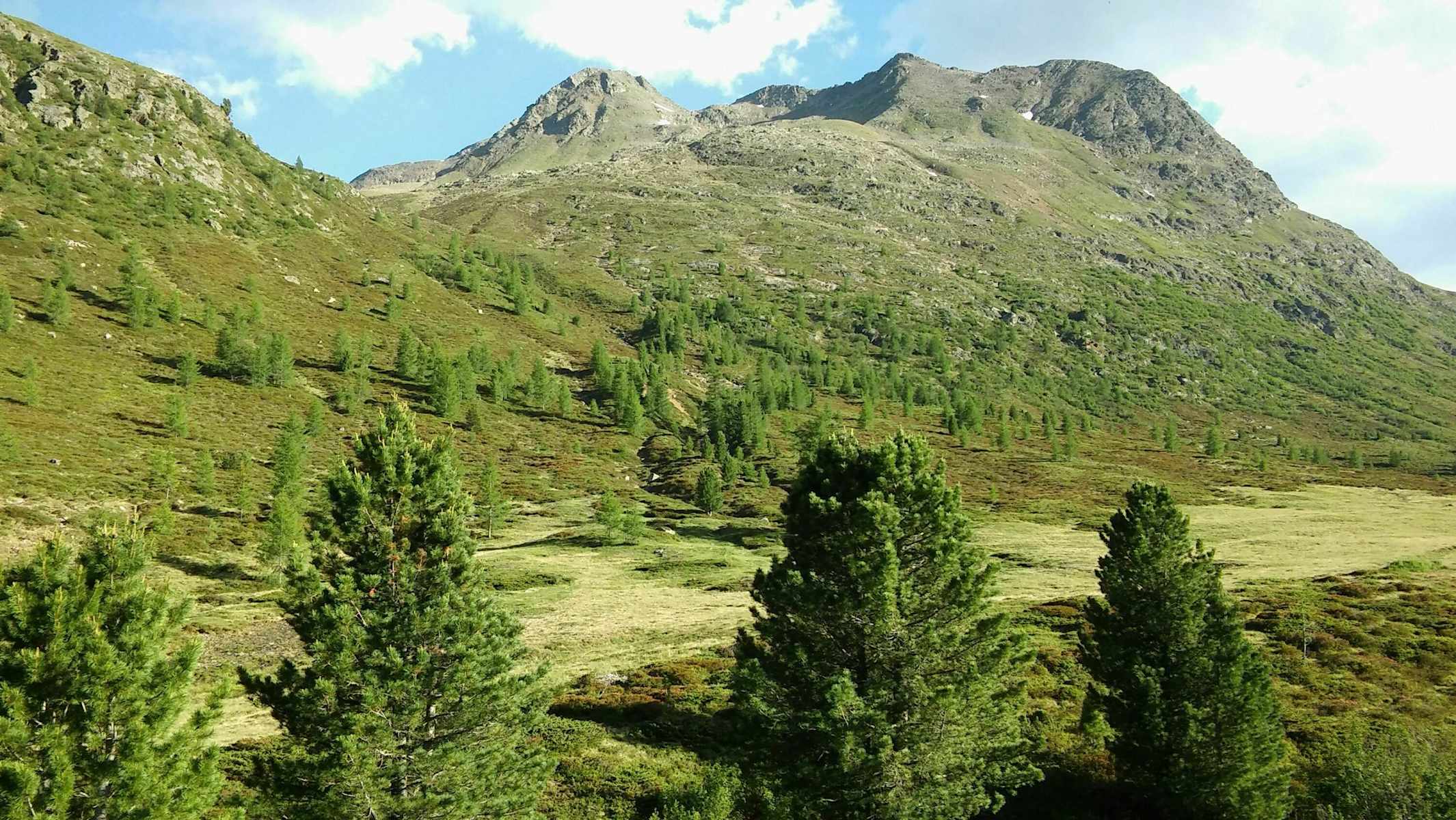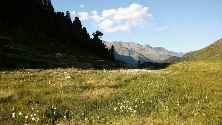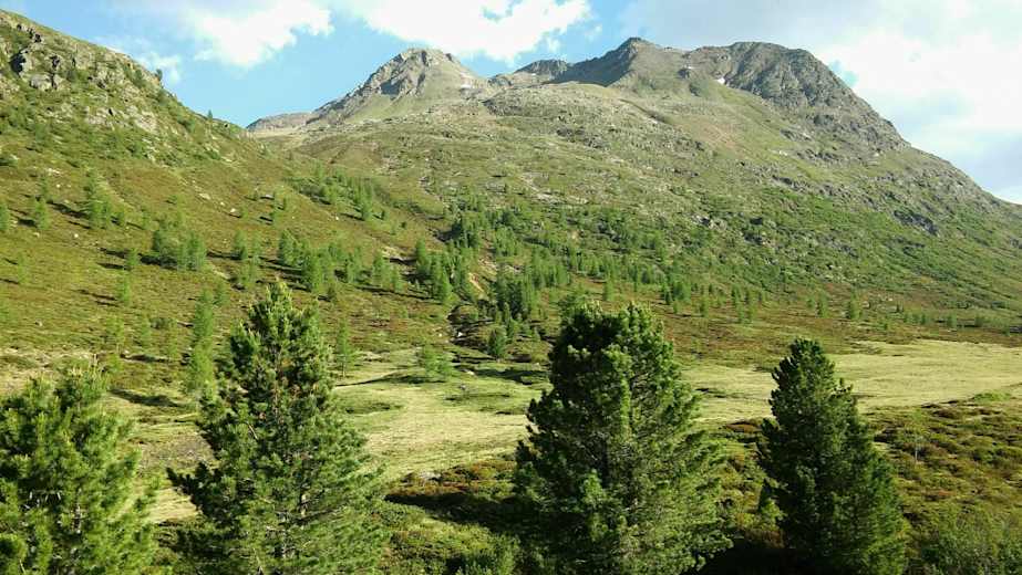 Gleich bei der Hütte beginnt nun der Anstieg. Der Weg schlängelt sich direkt an der unbemerkten Grenze zwischen Ost- und Südtirol aufwärts. Nach einiger Zeit überschreitet man die Grenze zur Kernzone des Nationalparks Hohe Tauern.