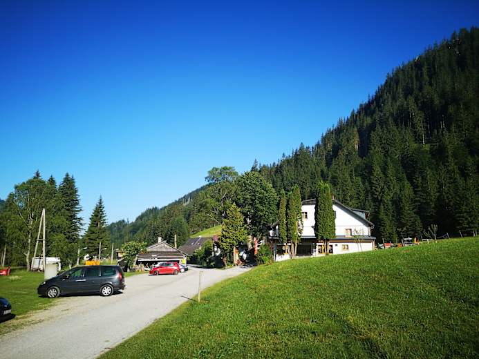 Parkplatz beim Gasthof Leitner im Tal der Kalten Mürz. Foto: Andreas Steininger, Naturpark Mürzer Oberland