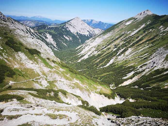 Diese lange Tour kann man mit einer Übernachtung am Schneealpenhaus auch auf zwei Tage aufteilen.