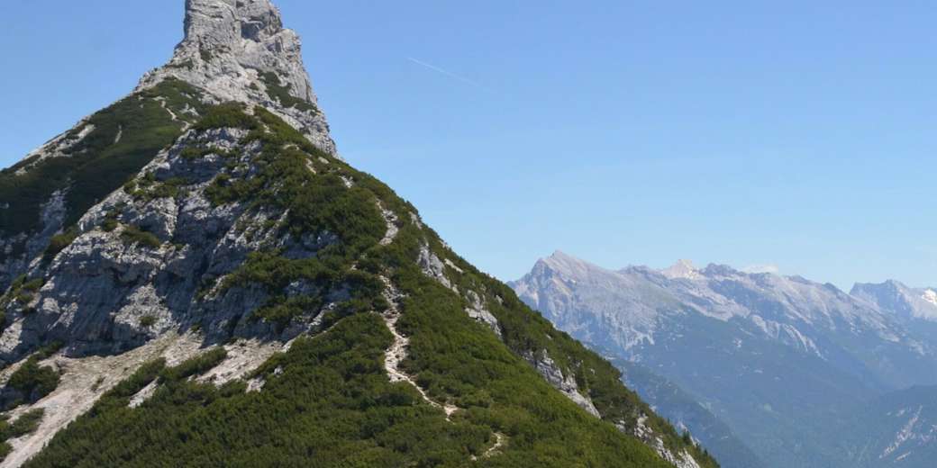 Nach dem Weißlehnkopf fängt die anspruchsvolle Bergtour zur Großen Arnspitze an, die das Mitbringen eigener Sicherung erfordert. Der Aufstieg zur Großen Arnspitze, 2.196 m, entlang der Arnspitz-Überschreitung erfordert Erfahrung und beinhaltet einige Kletterstellen.