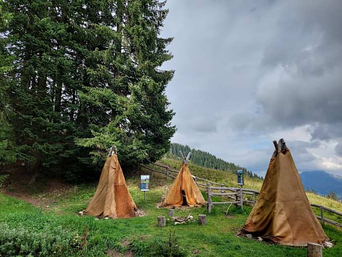 An der Mittelstation der Hörnerbahn sollte man dem Steinzeitdorf einen Besuch abstatten.