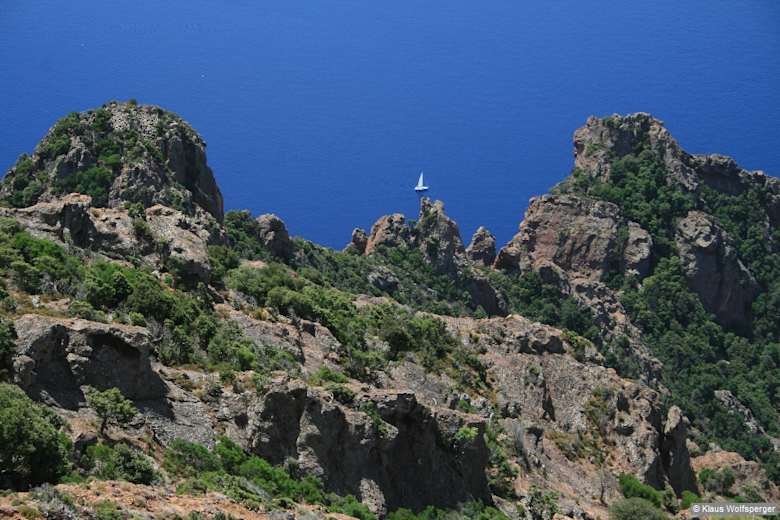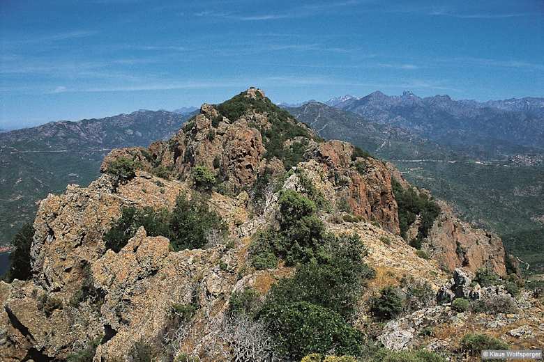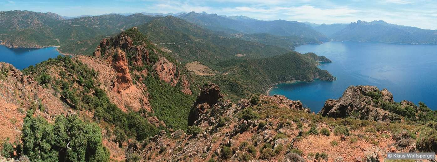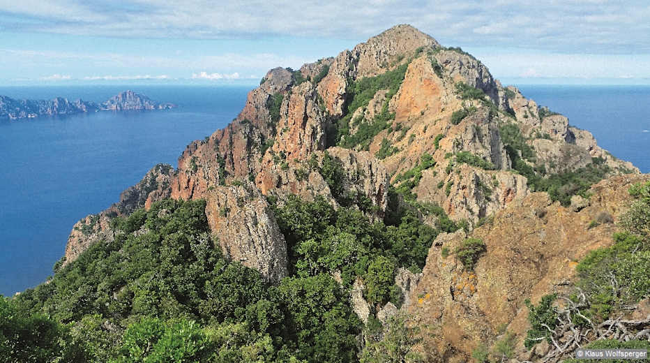 Der Monte Senino bildet den Eckpfeiler zwischen dem Golf von Porto und dem Golf von Girolata und eröffnet einen einzigartigen Rundblick auf die beiden Buchten und auf den Hauptkamm. Foto: Klaus Wolfsperger