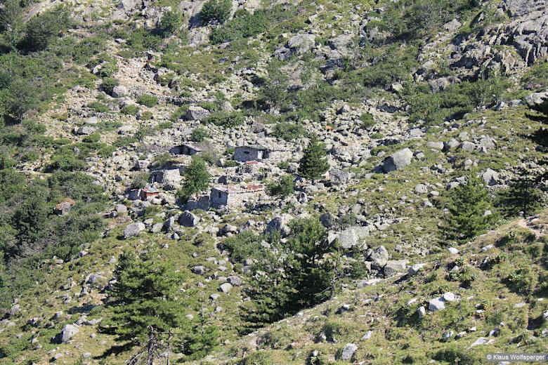 Offiziell Parkverbot ab Pont de Tragone (Brücke über die Restonica), deshalb parkt man am besten dort (wenige Parkplätze!, gut 5 Minuten bis zum Einstieg).