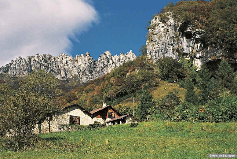 Die Bocca di Trat ist ein alter Übergang zwischen dem Sarcatal und dem Ledrotal, der jedoch mit dem Bau der Ponalestraße Mitte des 19. Jahrhunderts seine Bedeutung verlor. Während des Ersten Weltkriegs verlief die Front auch über diesen Kammeinschnitt. Zahlreiche Zeugnisse wie Schützengräben, Kavernen und Unterstände finden sich noch heute entlang unserer Wanderstrecke. Der Ausgangspunkt liegt hier relativ hoch, sodass sich die zu bewältigenden Höhenmeter in Grenzen halten. Zwei Einkehr- und Unterkunftshütten verlocken sogar zu einem längeren Aufenthalt. Vor allem das Rifugio Pernici, unweit der Bocca di Trat gelegen, könnte Stützpunkt sein für Wanderungen auf den Gaverdinakamm auf der einen Seite sowie auf dem mehrgipfeligen Kamm auf der anderen Seite, der sich bis zur Rocchetta erstreckt. Verbindende Ausschilderung sind dabei die Markierungen des »Sentiero della Pace«. Wir haben diese Route als Rundtour angelegt, die uns hinüber zur Bocca di Saval führt. Schöne, freie Talblicke von der Kammhöhe belohnen dabei für Aufstiegsmühen. Besonders reizvoll ist die Tour im Herbst, wenn die Aussicht klar ist und die Laubwälder in voller Farbe stehen.