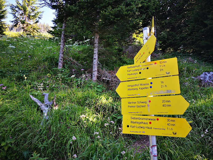 Abstieg über das Karl Ludwig Haus (bew.) und den Gretchensteig oder den Reißthalersteig retour zum Koglergraben und zum Ausgangspunkt.