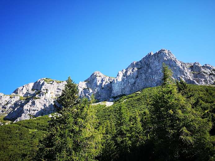 Von der Kogleralm führt uns ein grün - weiß markierter Steig zunächst über steile Almwiesen und dann durch Wälder teilweise steil in rund 1 Gehstunde aufwärts bis zur markanten Wegkreuzung unterhalb der Reißthalerhütte (unbew.).