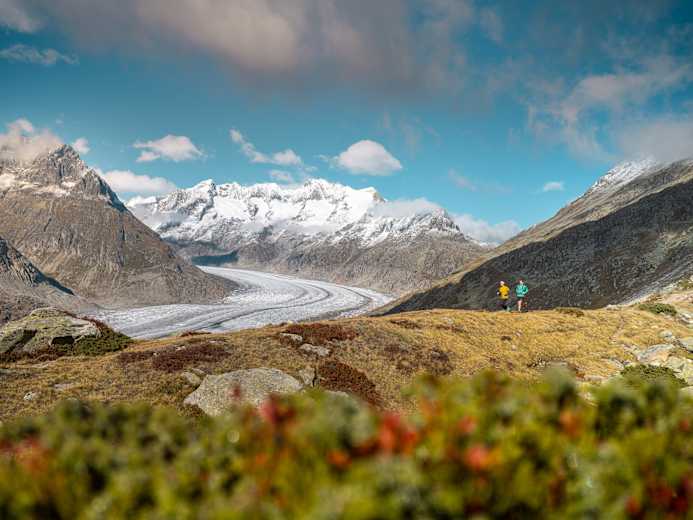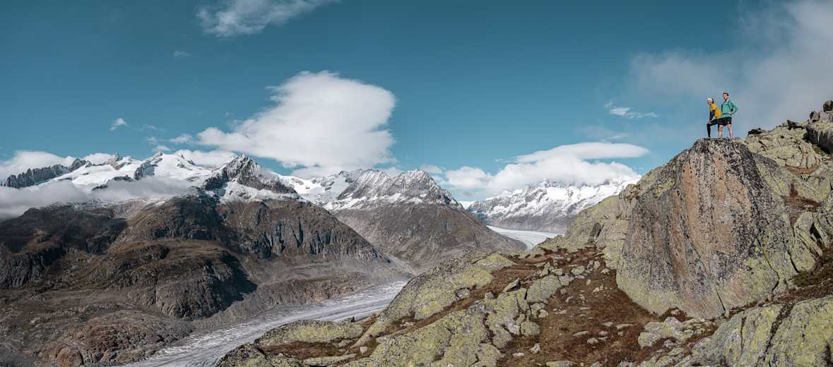 Der Stoneman Glaciara Hike in der Aletsch Arena ist eine traumhafte Rundtour mit Blick auf die Viertausender. Die Tour kann als gemütliche Wanderung in mehreren Etappen oder als Trailrunning-Route in Angriff genommen werden. Unterwegs warten ein spektakulärer Grat, zwei Hängebrücken und der Blick auf den mächtigen Aletschgletscher.